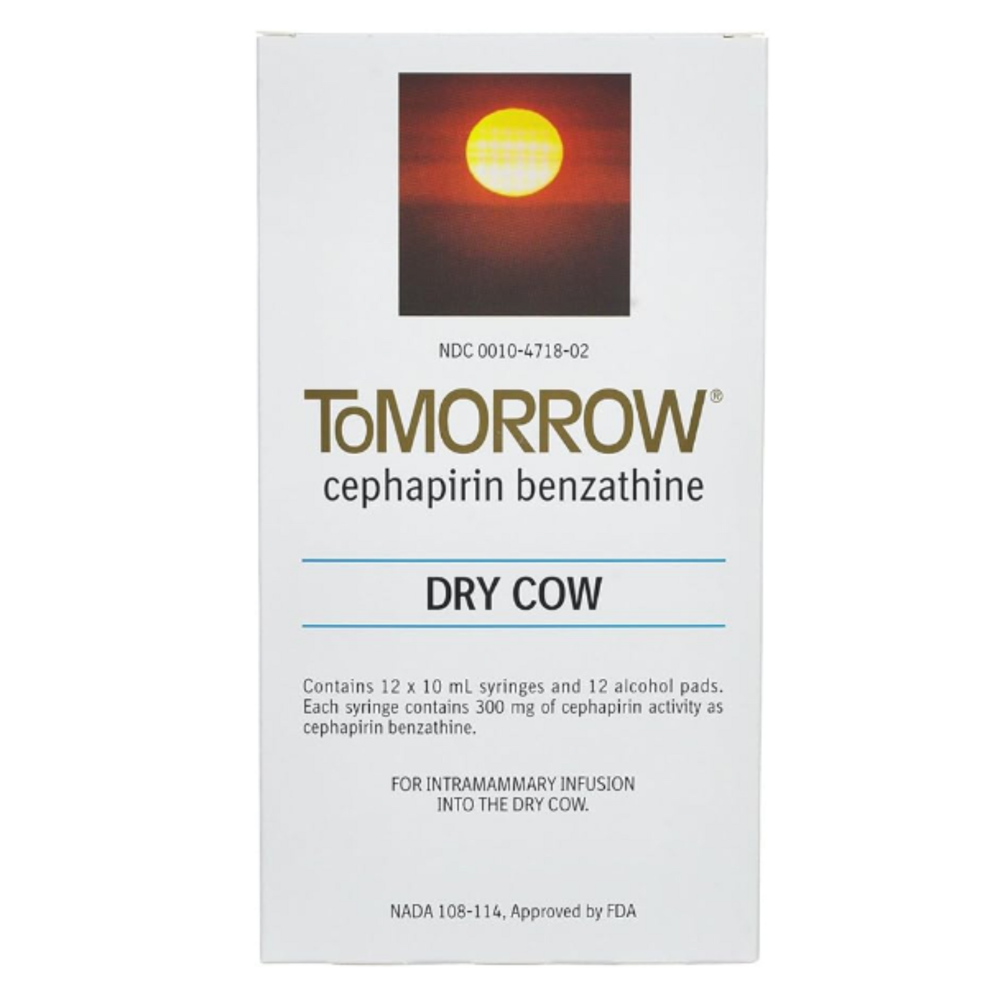 ToMORROW prescription intramammary antibiotic gives dairy producers time-tested, broad-spectrum control against the harmful organisms that cause mastitis in dry cows. It has been shown by extensive clinical studies to be efficacious in the treatment of mastitis in dry cows when caused by Streptococcus agalactiae and Staphylococcus aureus, including penicillin-resistant strains.